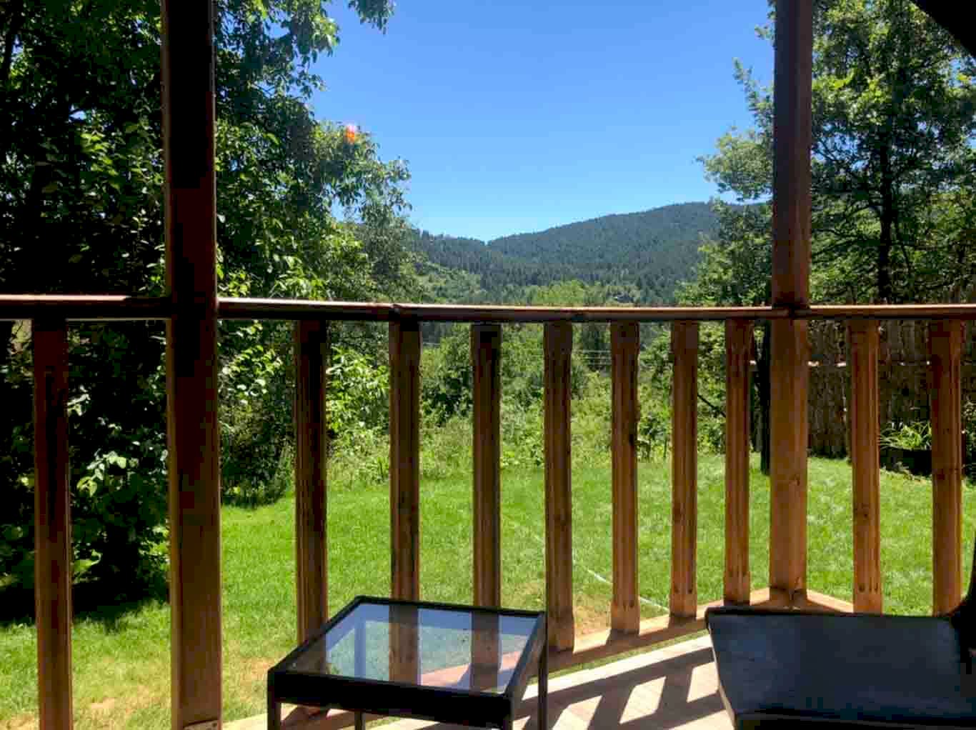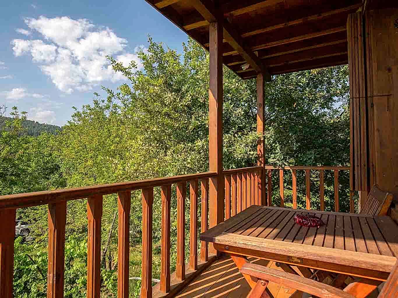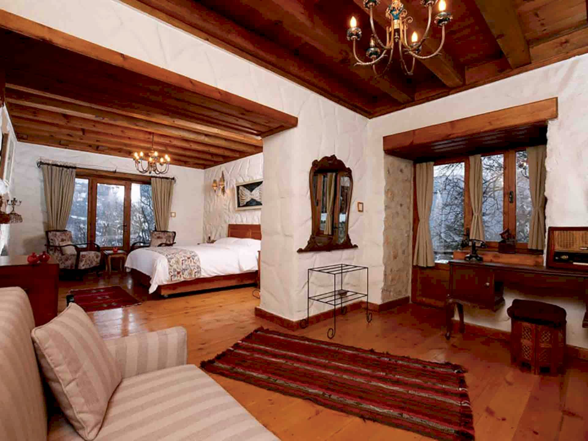 Taş evimizin 1. Katında yer alan odamız, camından ve büyük balkonundan etrafımızı çevreleyen ormana doğru sonsuz bir manzara sunar.. Balkonuna uzanan meşe ağacında, lezzetli meşe palamutlarının peşinden koşan sincaplara rastlamanız mümkün..