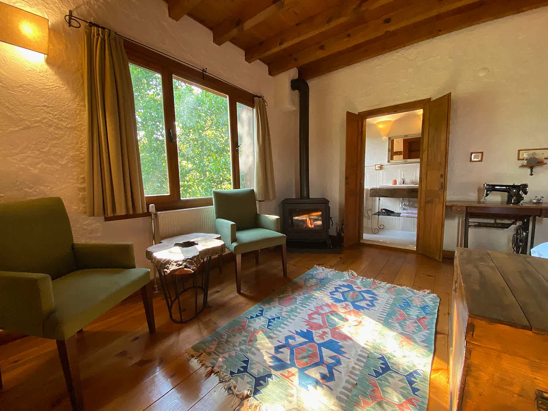 Bebekler gibi uyumanız için dikkatle tasarladiğımız yataklar, özenle dizayn edilmiş banyosu, ahşap tavanlarının verdiği hoşluk, merkezi ısıtmanın yanısıra, kışın, ateşin sıcaklığıyla mest eden camlı döküm sobası, size unutulmaz bir konaklama sağlayacak..